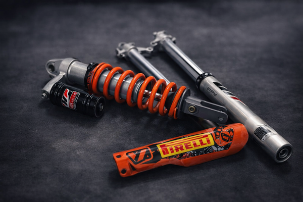 In den 1990er- und 2000er-Jahren setzte KTM intensiv auf WP (White Power) Stoßdämpfer in Motocross- und Enduro-Modellen. WP etablierte sich schnell als Referenz im Rennsport – dank Haltbarkeit, Einstellmöglichkeiten und Performance.